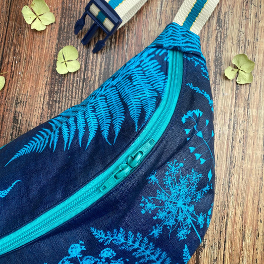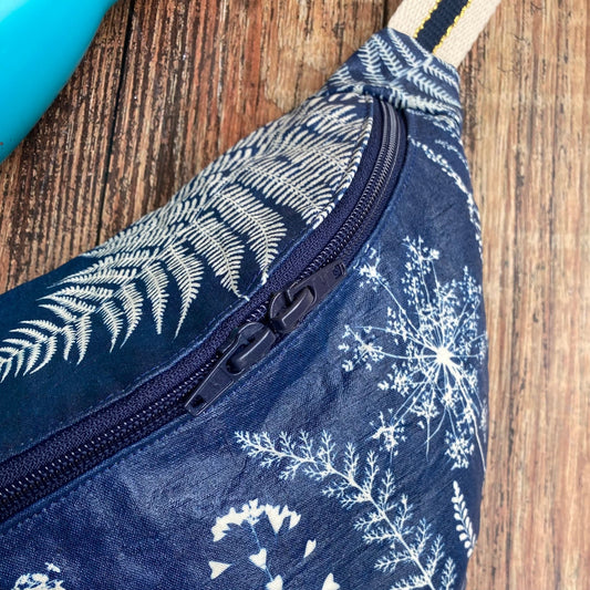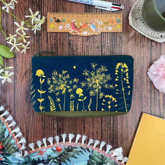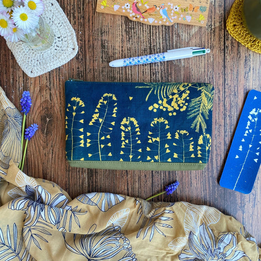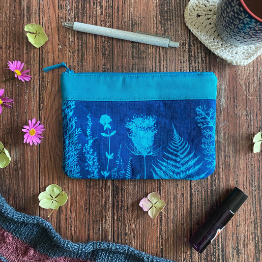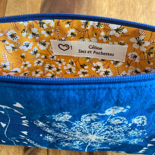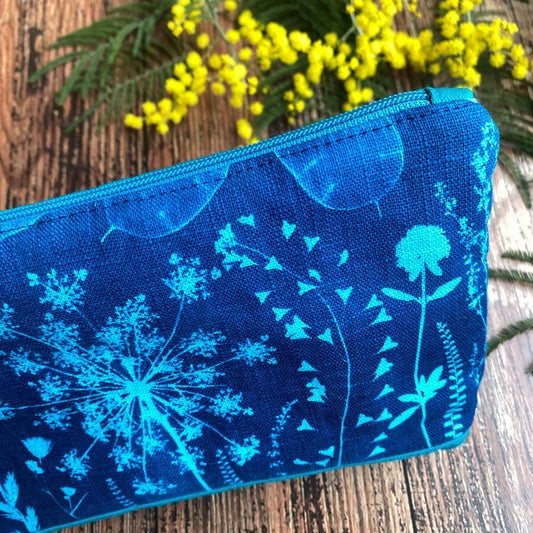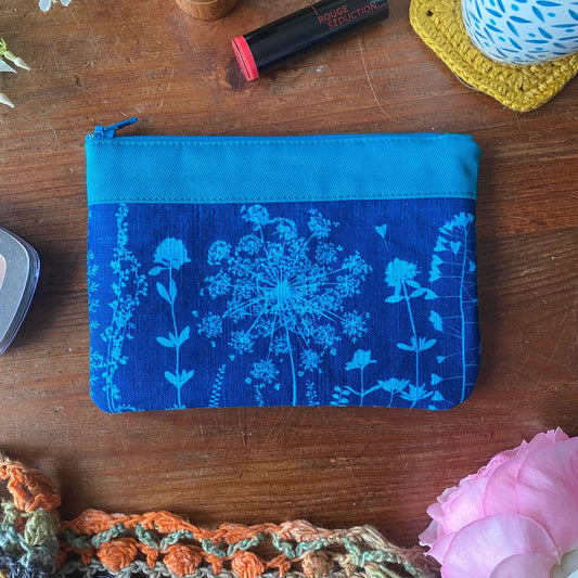 Trousse en tissu fleuri imprimée au cyanotype | Mamie Blue fleurs sauvages