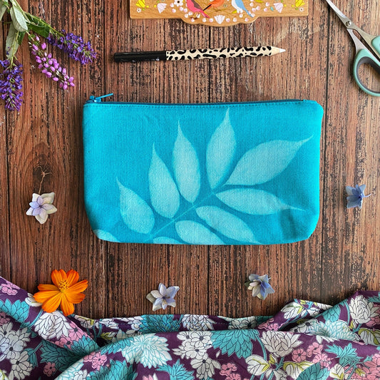 Imprimées en cyanotype, ces pochettes ne sont pas de simples trousses zippées... elles vous garantissent d'avoir toujours un petit rayon de soleil dans votre sac.