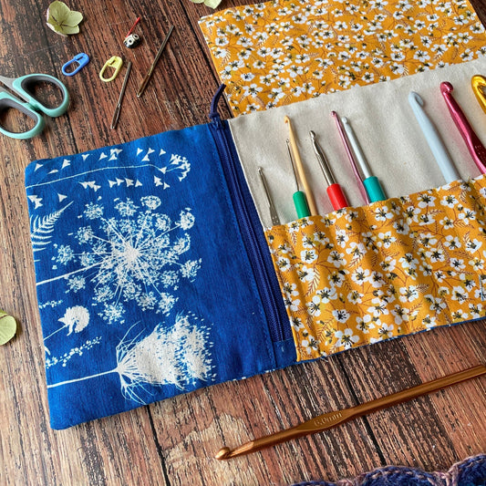Pochette en cyanotype pour ranger les crochets - Mamie Blue