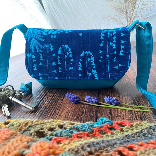Petite pochette en tissu cyanotype fait main | Coeur Mimosa